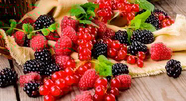 A cor vermelha vibrante das frutas vermelhas é devido à presença de compostos chamados antocianinas, poderosos antioxidantes que também protegem o corpo contra os radicais livres