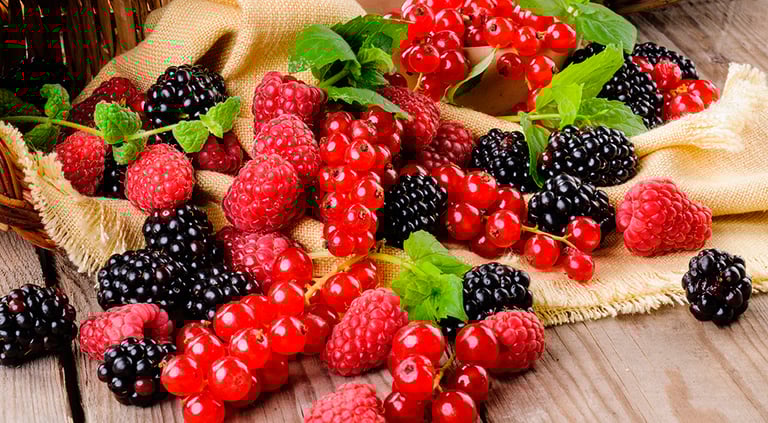 Frutas vermelhas são aquelas que possuem uma coloração avermelhada ou roxa-escura. Essas frutas são morangos, framboesas, mirtilos, amoras e até mesmo a jabuticaba e o açaí. As frutas vermelhas são ricas em antioxidantes, como vitaminas C e vitaminas do complexo B. Esses benefícios são ótimo para a pele, pois aumentam a produção de colágeno, protegem contra o envelhecimento precoce e contra os raios UV (ultravioleta).